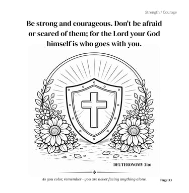 Strength & Courage: A bold shield featuring Deuteronomy 31:6.