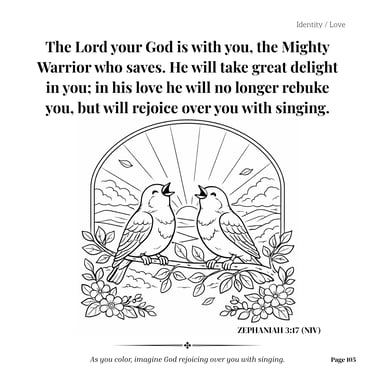 Divine Love: Two singing birds celebrating Zephaniah 3:17.
